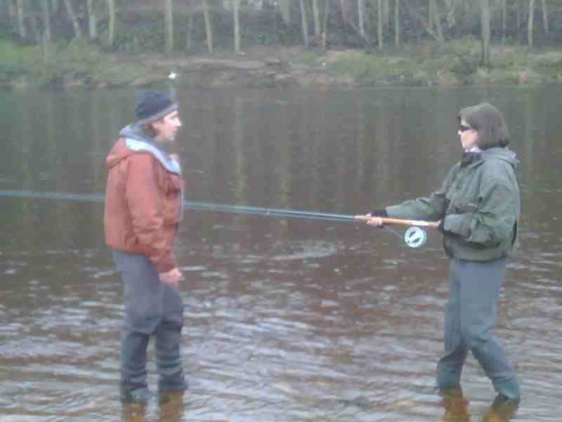 Myself and Sarah were lucky enough to be invited by Vicky Bell Marketing Director at Game Fishing Supplies to spend a day with Jim Fearn of Guide Fly Fishing, Rio pro guide and senior assessor for AAPGAI on a private stretch of water on the Tyne. The day started with greetings and a mug of hot coffee waiting for Jim to start his casting presentation. If anyone has seen Jim cast you will understand what i’m about to say “he engages an audience with effortless style, and makes his casts look so simple, encouraging words gives you the confidence to try the casts he demonstrates” and yes he has bad casting days too….!
