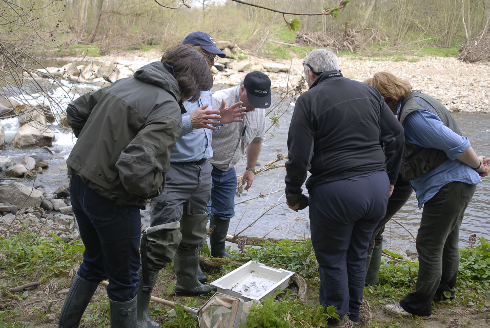 Cliff explained the methods of sampling, Sarah commented to the group that when her mum was a little girl, stone turning was something she would do with her father before they started fishing to see what fly life the water held.