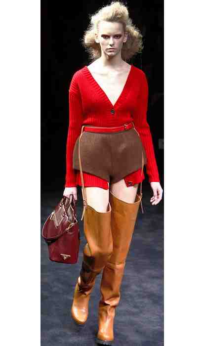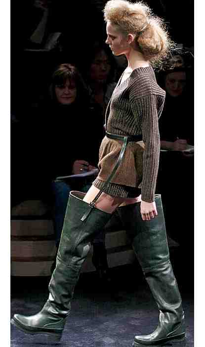 Prada is well known for finding inspiration in places where most designers fear to tread. For autumn 2009, she went down to the riverbank, cast her net wide and came up with a collection that was brave and beautiful. Along with tobacco-brown belted tweed coats and ribbed fisherman’s … Thighs the limit: Prada’s wader boots are practical and stylish