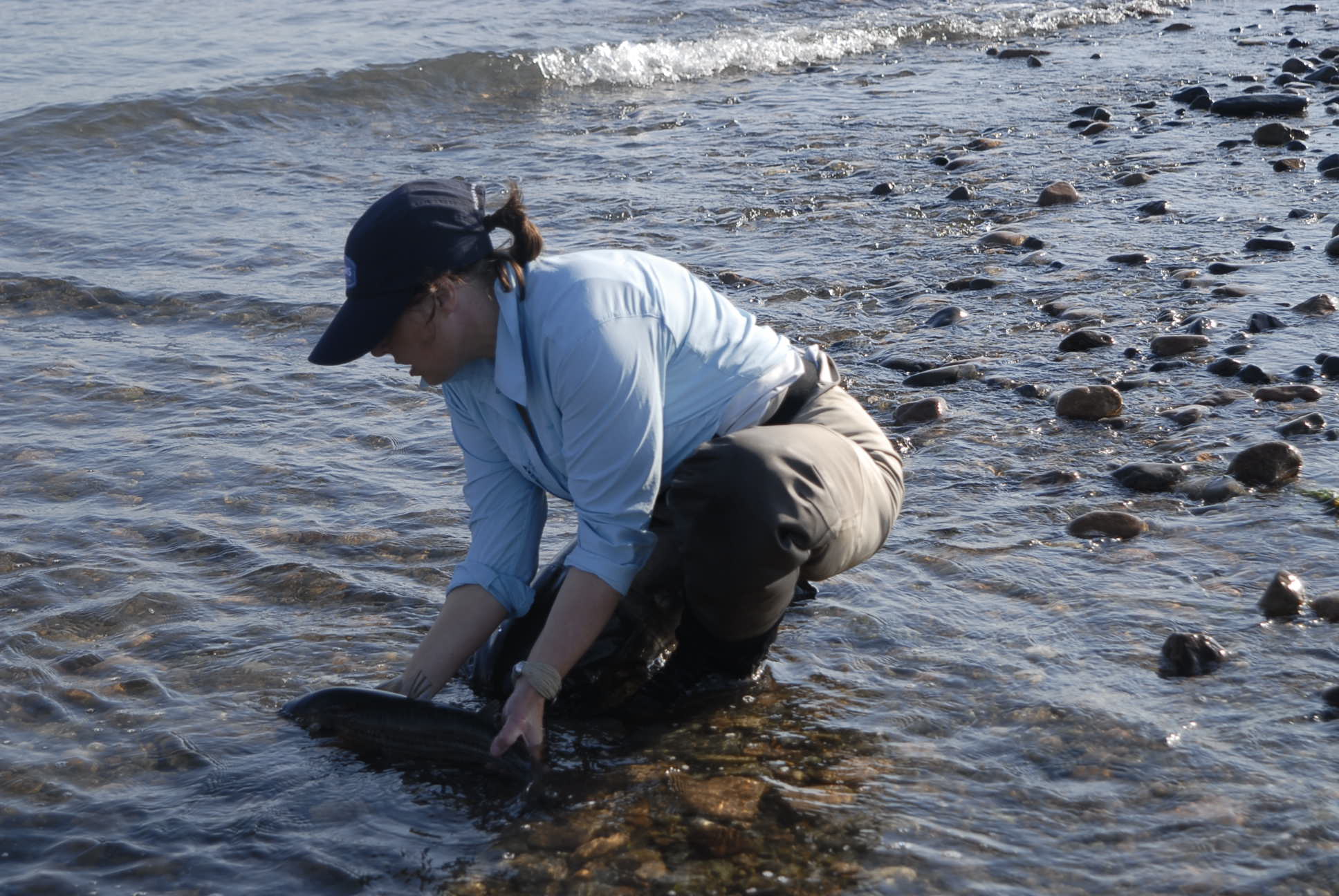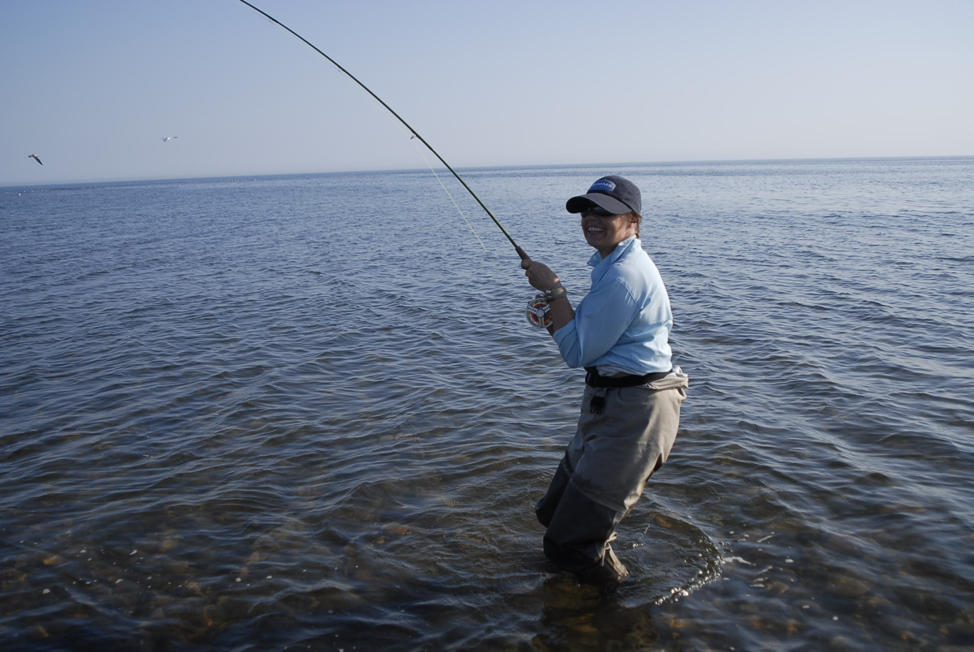 taking her line down to the backing. So it was “fish on” and now the pressure was on to land the mullet, steering the fish and regaining as much line as you can. Fish number one landed, beaming smiles, encouragement and cheers from all the ladies, including our instructors. “Such a magical experience”.