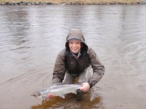 Emily with a 6lb springer she caught on the River Dee in March. Salmon was placed back into the River DEE