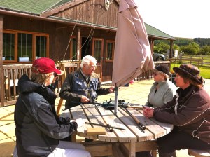 After lunch Cliff demonstrated gutting fish, filleting and smoking in the open air. This attracted regular Chatton anglers who were also interested in picking up a few tips. Paul and Anne, whilst Cliff was filleting, assembled rods ready for an introduction to casting a double handed rod for salmon. It was great to see all the new ladies trying the double handed rod too.
