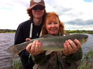 Cliff & Anne gave sessions for beginners on equipment, how to set up a fly rod and casting. The ladies in ‘very windy’ conditions were introduced to the roll and overhead casts, then both casts were joined together. Before lunch the ladies fished the lakes where Margaret, with coaching from Cliff, caught her first fish, a real beauty.